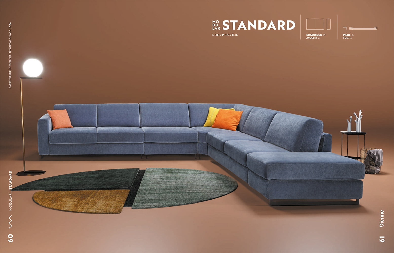 “Modulär program”, ett projekt som föddes ur behovet av att möblera varje vardagsrum. Den fullständiga anpassningen och friheten att komponera olika moduler efter ens smak är huvudsyftet. Tre typer av av modul bäddsoffor (Standard, Plus, Pro), fyra versioner av armstöd och fyra olika fötter är de användbara elementen som gör produkten unik.